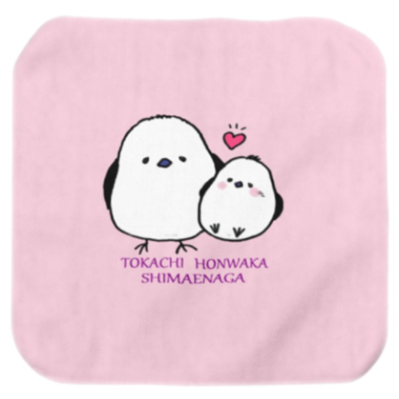 ピンクが可愛いタオル生地に エナちゃん親子のデザインです。