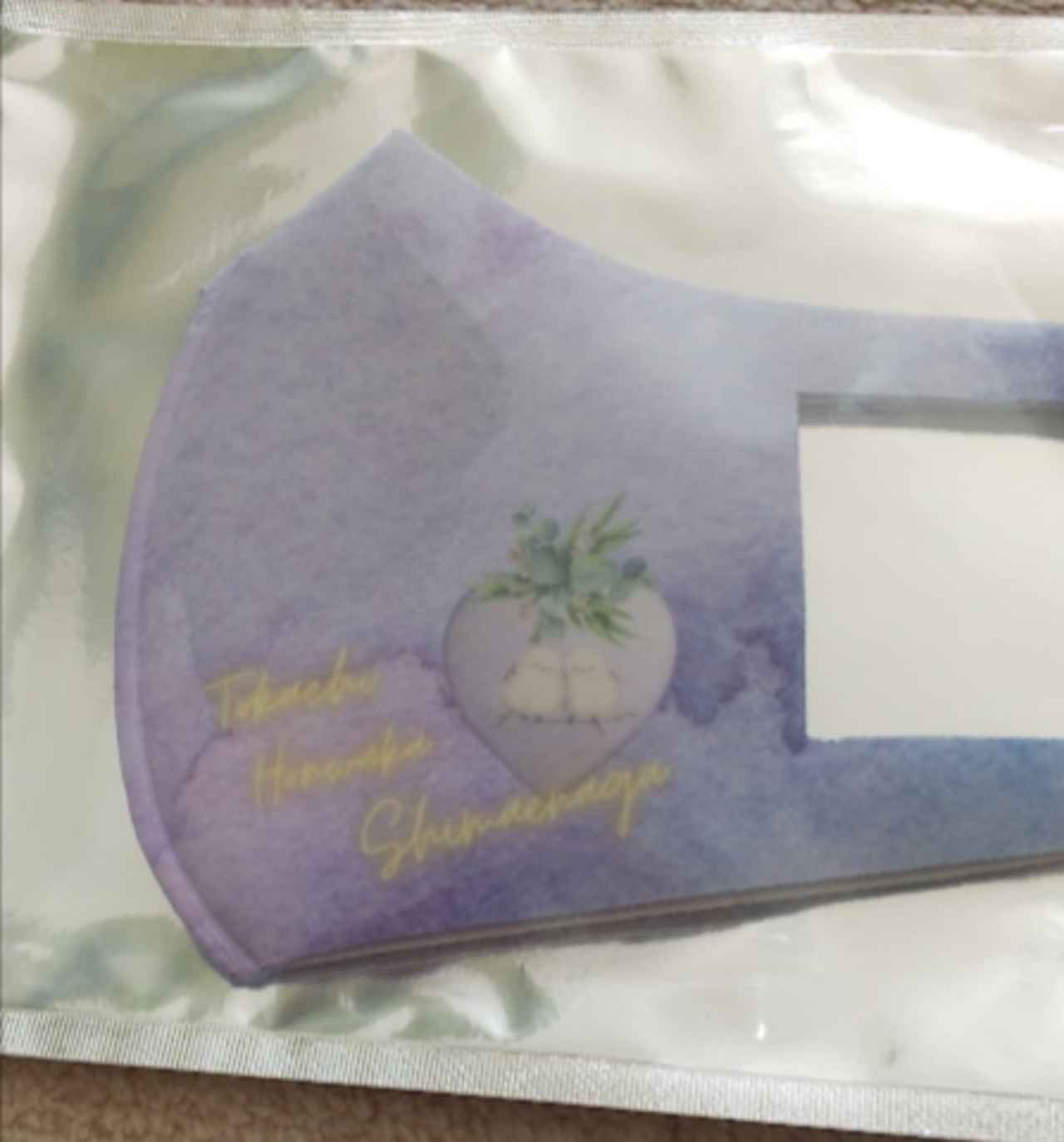 ラベンダーカラーをベースにした。大人用マスクです。