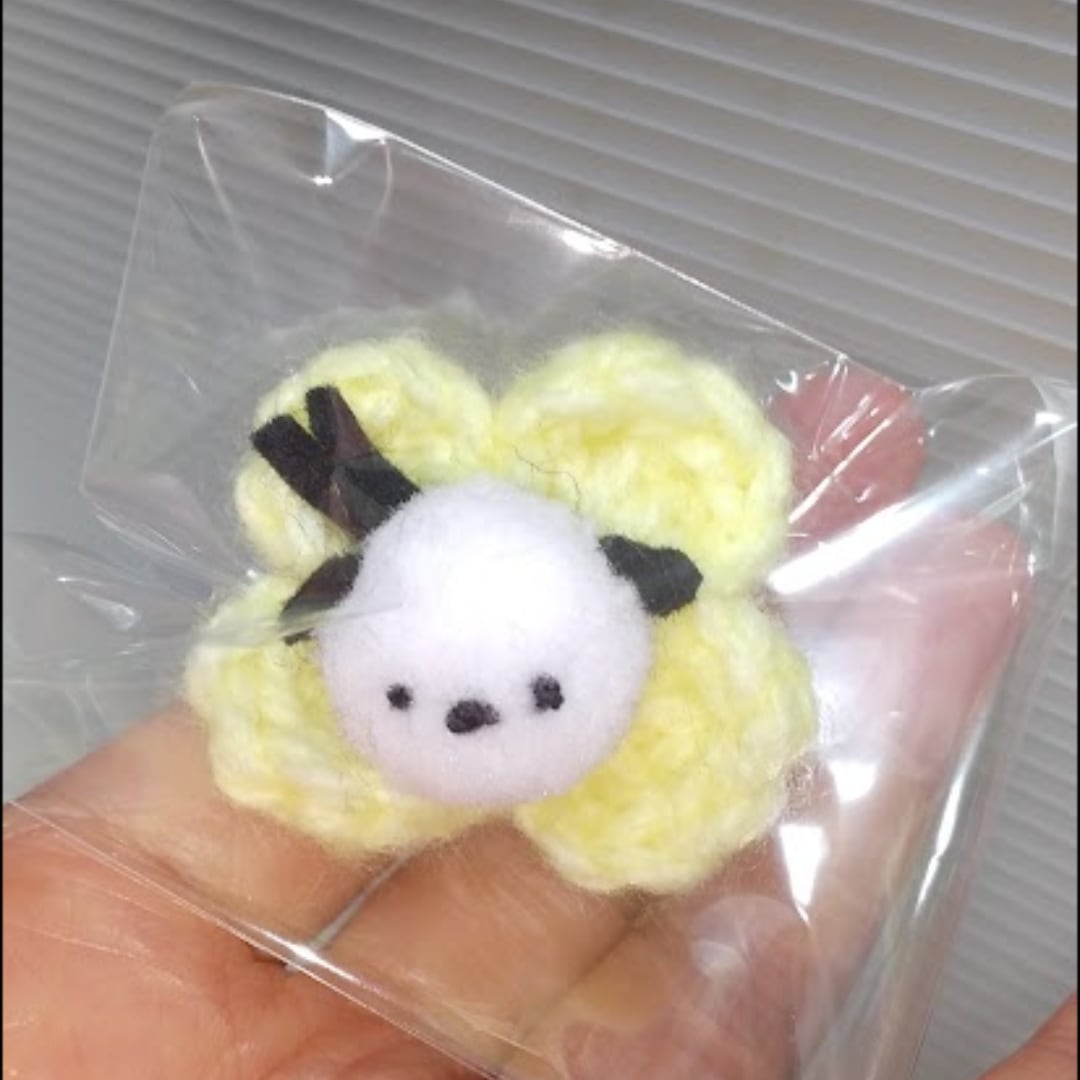 レース編みでお花の上に、ポンポンのシマエナガちゃんが可愛くちょこんと乗ってます♪
