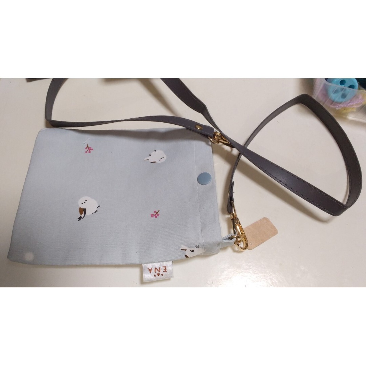 ハンドメイド シマエナガ柄サコッシュ