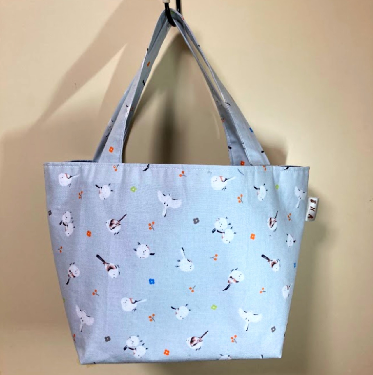ハンドメイド シマエナガ柄ランチトート(ブルーグレー)